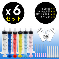 • 6 set of accessories (1 pair of gloves + syringe 10ml + needle + cap)